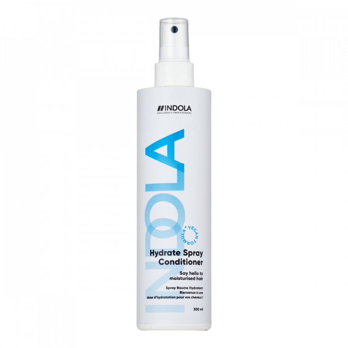 Indola Hydrate Spray Conditioner is een spray conditioner die de natuurlijke vochtbalans van het haar direct herstelt. Het haaroppervlak wordt gesloten waardoor het haar super zacht aanvoelt en intens gevoed wordt.